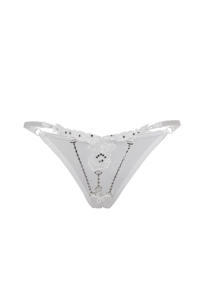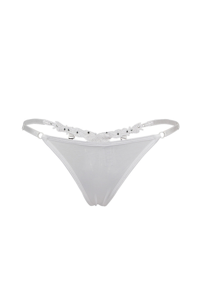 La marque Paris Hollywood nous présente ce string blanc ouvert à l'avant et décoré de strass, le summum du charme et de l'audace.